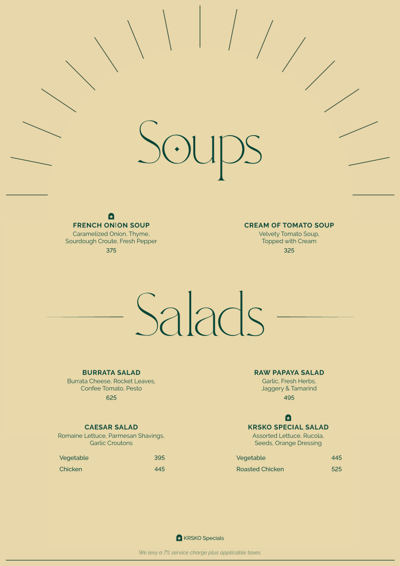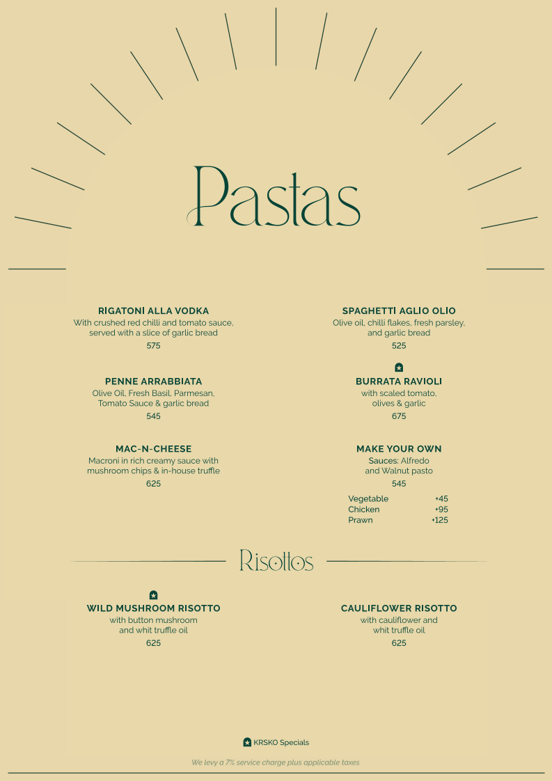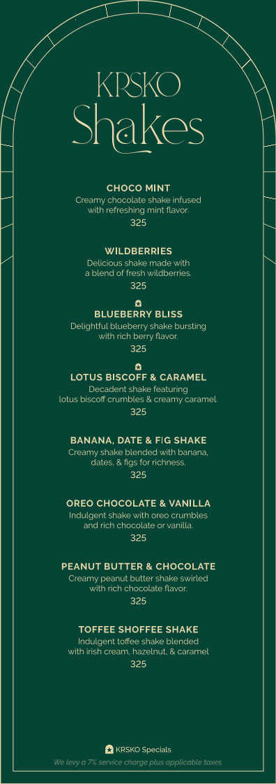 - Desserts: Try the innovative Krsko Affogalo flavors, including a Greek Affagato for ₹395 and a Crumbled Affagato for ₹295.